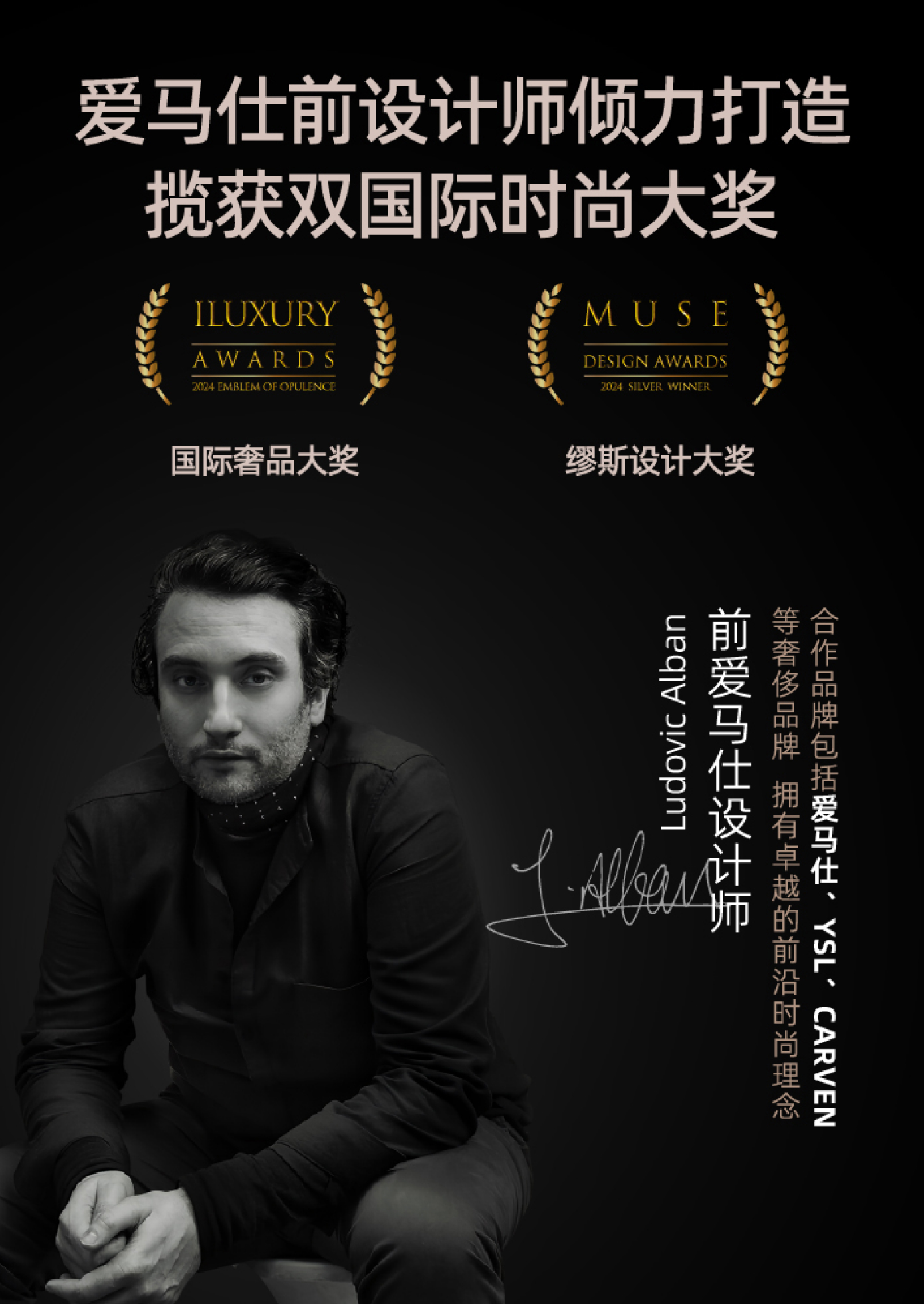 • 逸陽聯合前愛馬仕首席設計師傾力打造奢品小黑褲,榮獲時尚設計類奧斯卡「法國muse大獎」及時尚界風尚標之稱的「國際奢侈品大獎」。